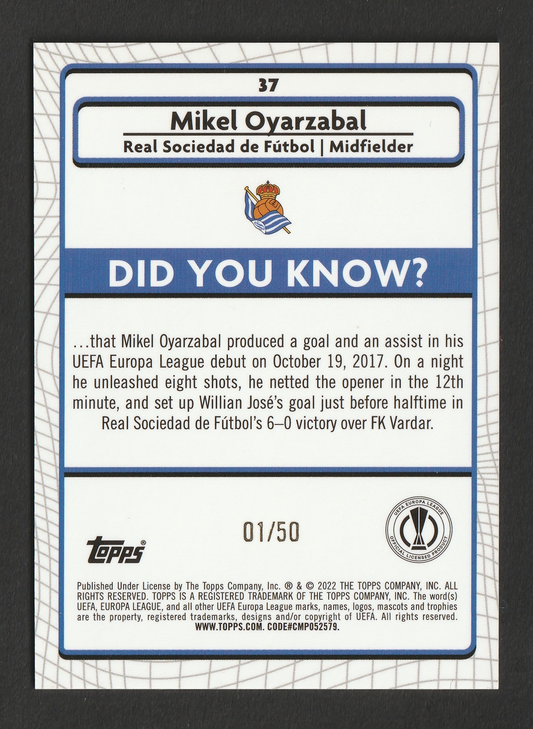 Mikel Oyarzabal 2021/22 Topps Merlin Collection Chrome UCL Gold Atomic Refractor 01/50 #37